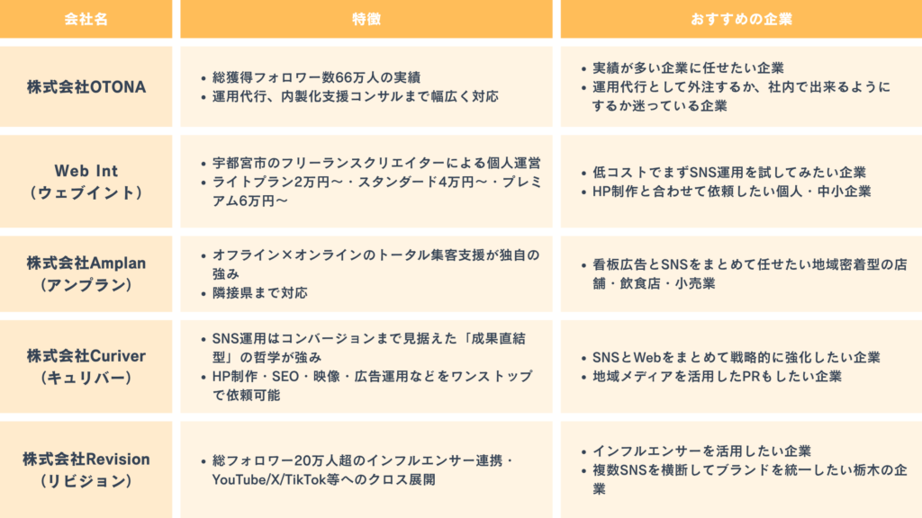 ここからは実際に栃木県でインスタ運用代行を行っている会社を紹介します。
