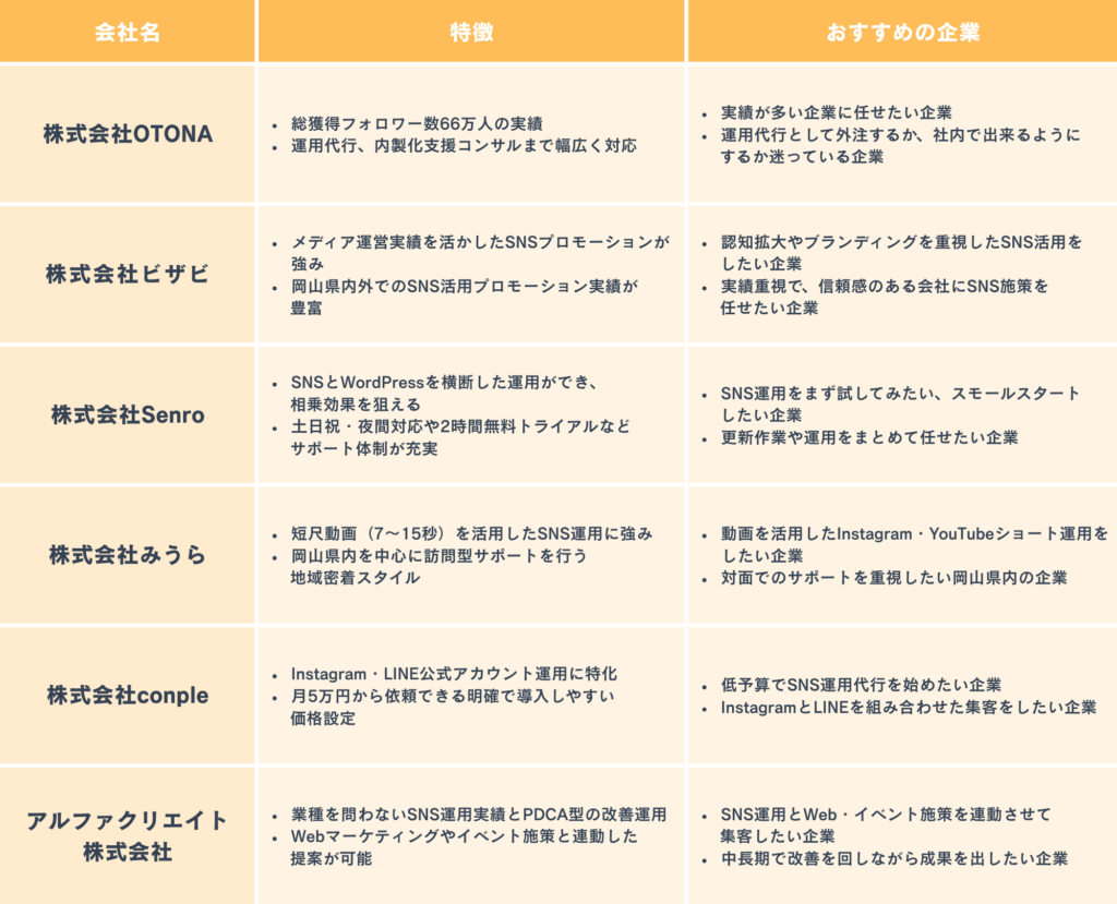 ここからは実際に岡山県でインスタ運用代行を行っている会社を紹介します。