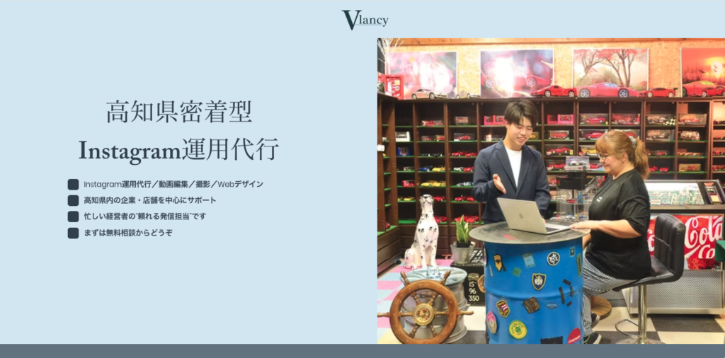 Vlancyは、高知県香南市を拠点に、地域密着型のInstagram運用代行サービスを提供する会社です。