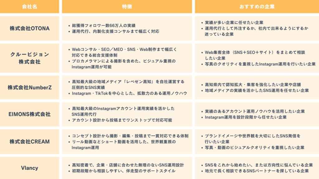 ここからは実際に高知県でインスタ運用代行を行っている会社を紹介します。