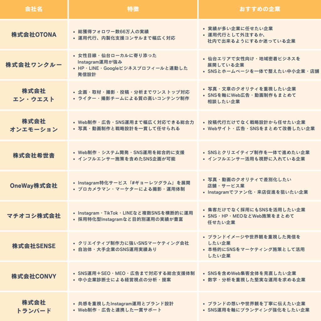 宮城県でおすすめのインスタ(SNS)運用代行会社10選