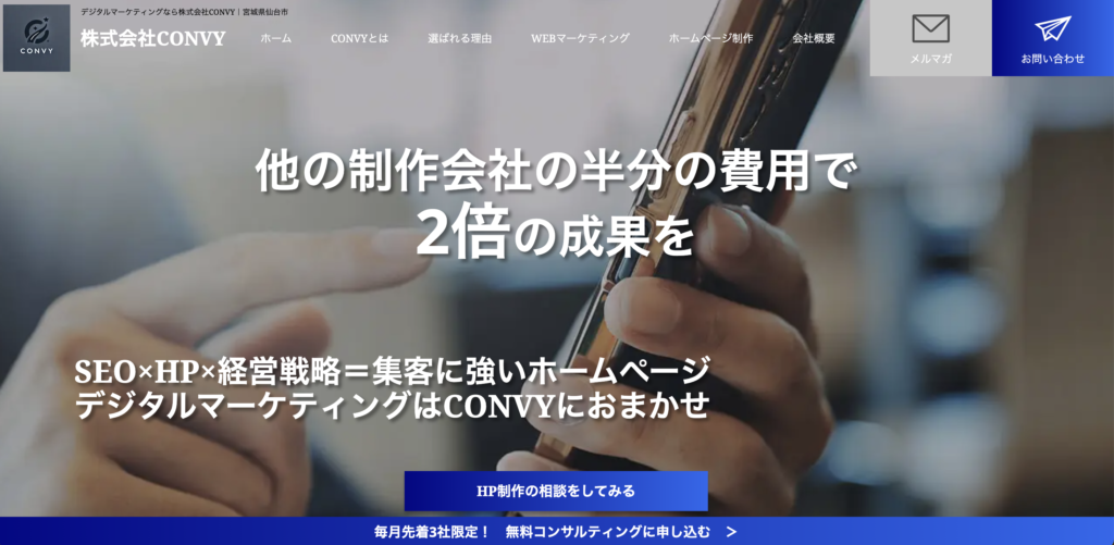株式会社CONVYは、宮城県仙台市太白区に本社を置くWebマーケティング支援会社です。