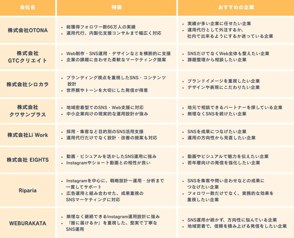 ここからは実際に新潟県でインスタ運用代行を行っている会社を紹介します。