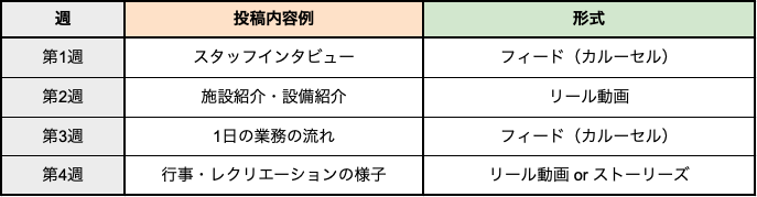 1つの投稿に1つのメッセージだけを込めることで、求職者がフィードを上から順に見ていくだけで、自然と施設の全体像を理解し、応募に至る設計になっています。