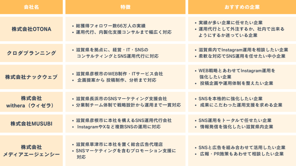 ここからは実際に滋賀県でインスタ運用代行を行っている会社を紹介します。