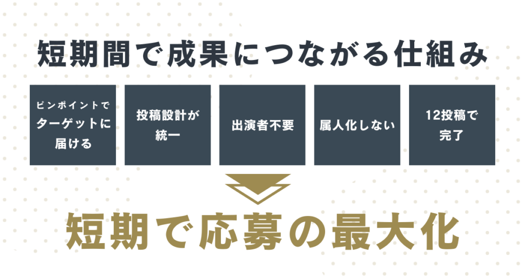 という特性により、SNS採用でも短期検証 × 応募最大化が実現できます。