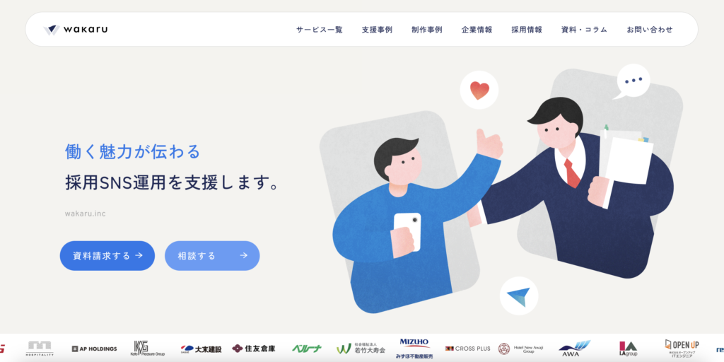 wakaruは、ホテル・アパレル・銀行など100社以上の支援実績を持つSNS採用の専門会社です。